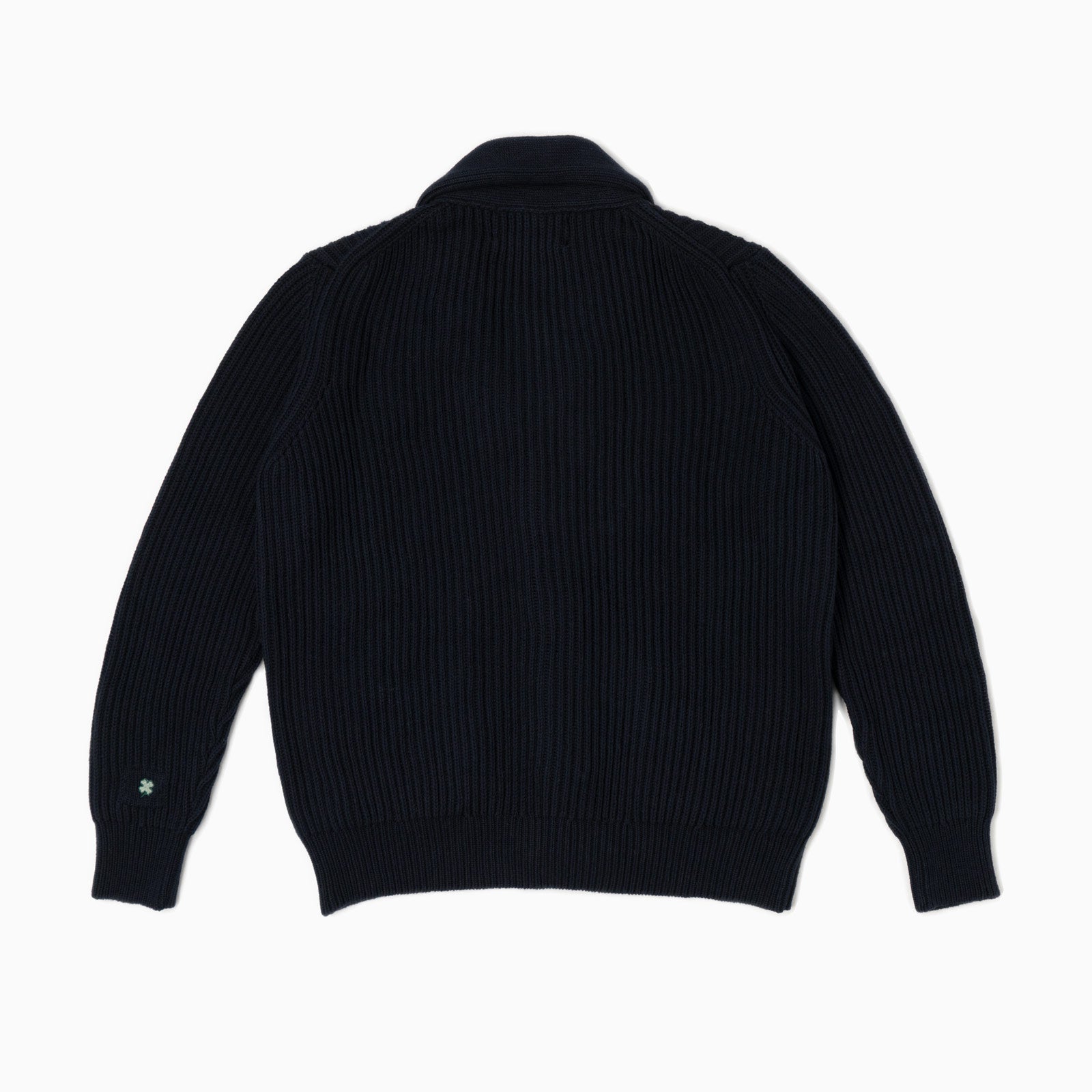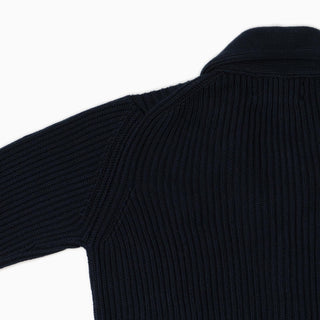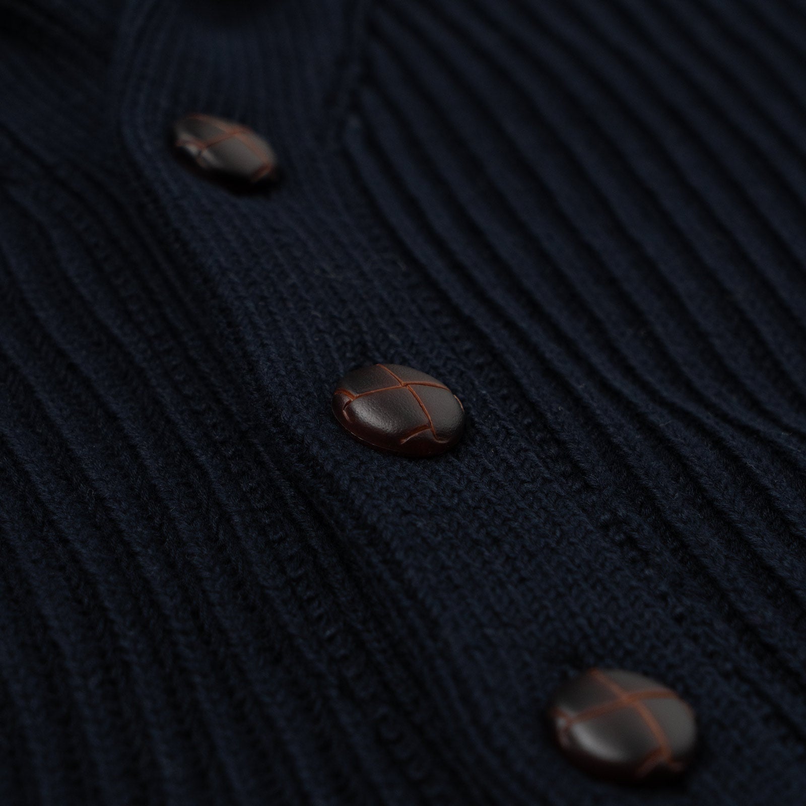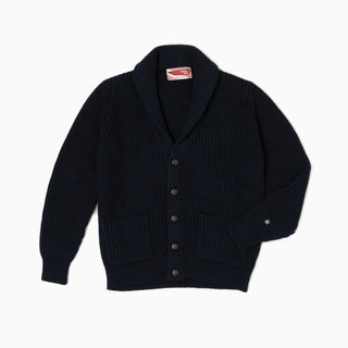 Il nostro Cardigan con collo scialle, 5 bottoni in maglia inglese. 100% cotone made in Italy.