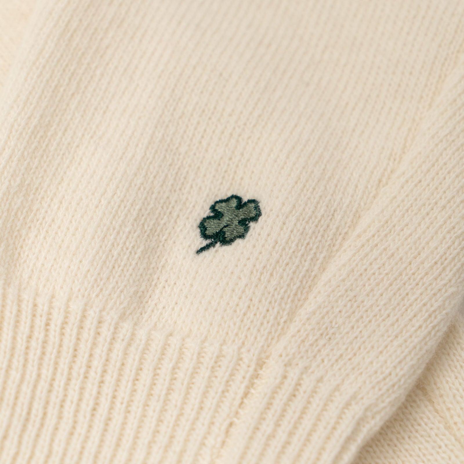 vestibilità regular dal filato morbido e confortevole. Il piccolo ricamo quadrifoglio sul polso destro è un portafortuna che ti accompagnerà in ogni tua avventura.