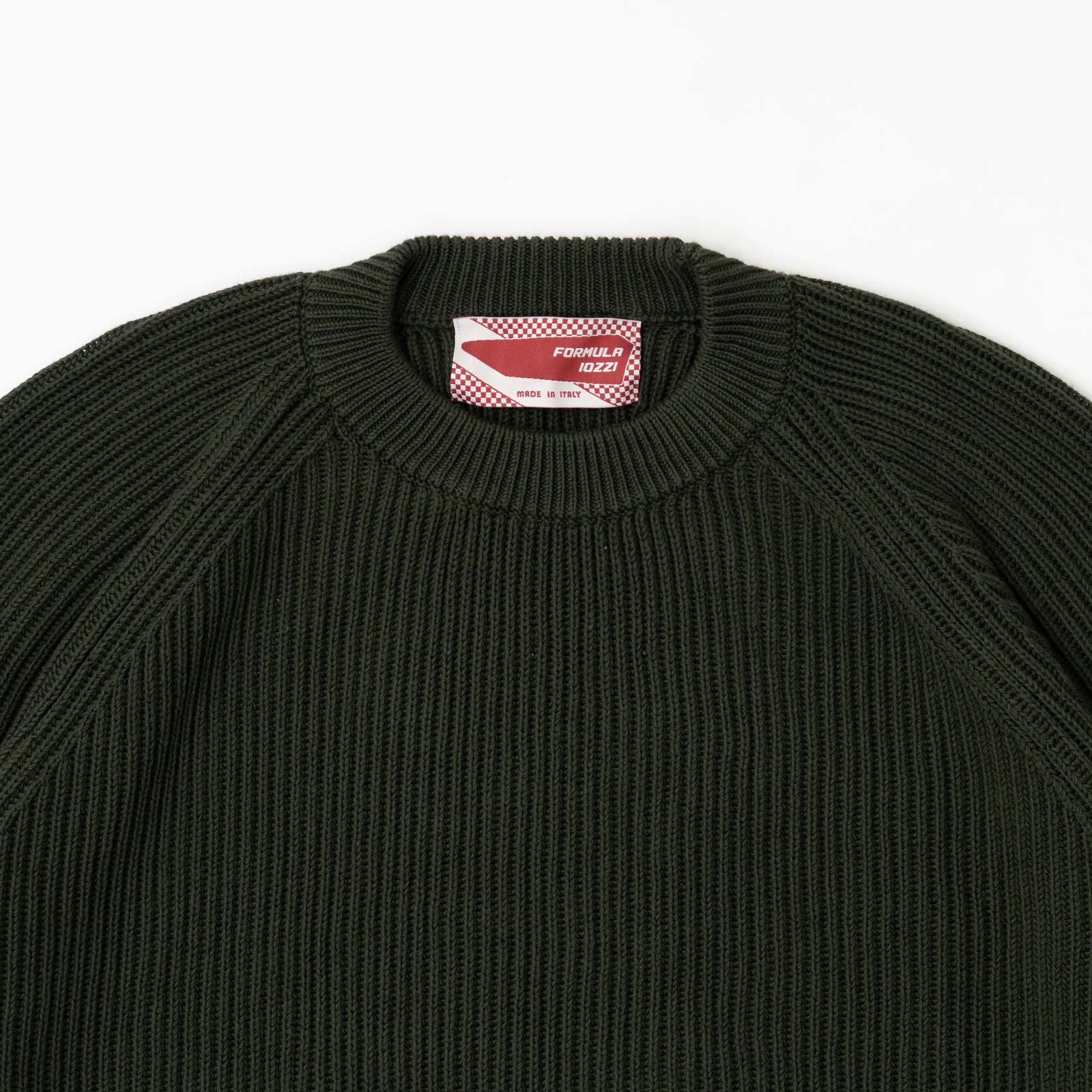 Il nostro girocollo in maglia raglan a coste inglesi. 100% cotone made in Italy in finezza 7.